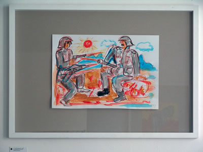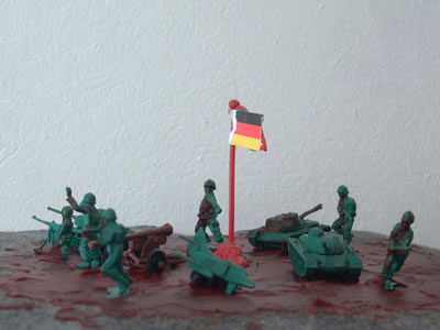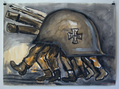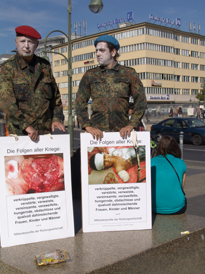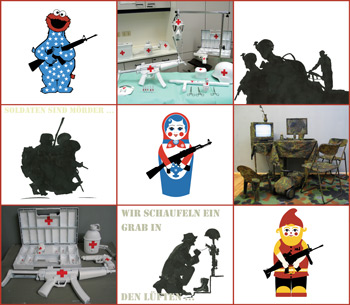 Mit Arbeiten aus verschieden Sparten wollen wir die Kriegsthematik auch wieder auf dem künstlerischen Feld aufgreifen und über visuelle Ikonen in die aktuellen Diskussionen zurücktragen. Das Thema Krieg ist für viele noch ein utopisches Feld aus dem medialen Bereich, (vielleicht bei den jüngeren auch als home reality consolen spass bekannt) jedoch sind die Auswirkungen des “Krieg gegen den Terror” nach zehn Jahren überall sichtbar, sowohl im Bereich der Bürgerrechte aber auch auf dem internationalen wirtschaftspolitischen Feld. Die Verflechtungen des militärisch-industriellen Komplexes in den verschieden Regionen der Welt sind als normal-Bürger kaum noch durchschaubar. Die schleichende Militarisierung der zivilen Gesellschaften ist wieder auf dem Vormarsch.