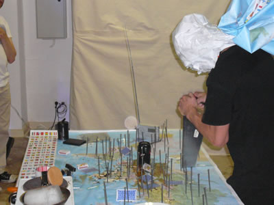 Eine Soundinstallation der Medienaktivistin Iris Wessolowski verknüpft auf subtile Art und Weise fiktive und reale Begebenheiten, die manch einer nach den langen Tagen und Nächten in den Camps und auf den Feldern um Heiligendamm, nicht mehr voneinander zu unterscheiden wusste.