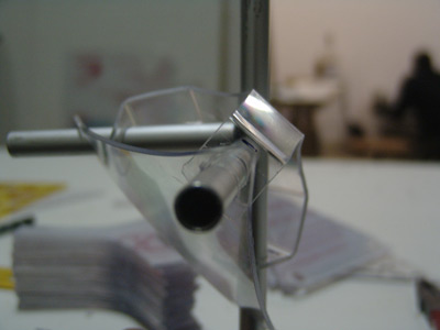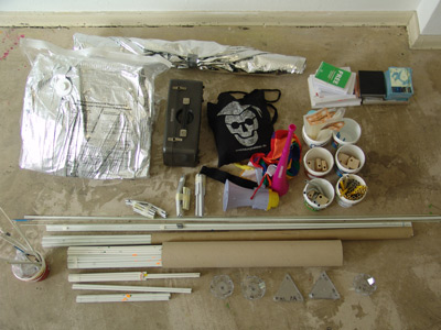 The idea to use wood was rejected soon, because of the weight and inflexibility. So the indicated material was glass-fiber, which was not really cheap to get but it was the only material we could use for our idea. The skeleton we needed was like the grid of a tent, with connectable pieces and middle sections. Ricardo spent like three days developing this special pieces and he masterly resolved the technical and the material problems.