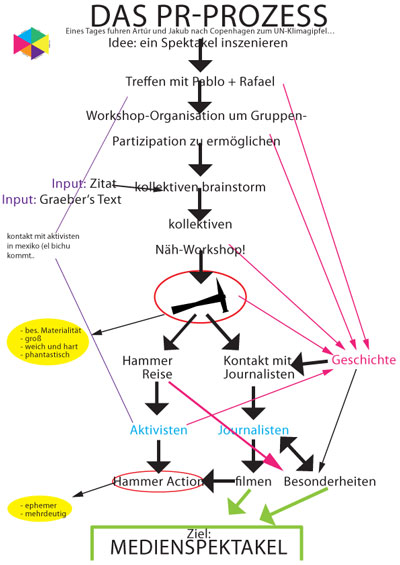 We invite you to the opening of our exhibition “Battle of the Spectacle” on the 27th of November in the OKK Raum in Berlin. Here you will be able to view prototypes of “El Martillo,” video documentation and original sketches. You will also be able to follow the events in Mexico by live stream in our media center that will be set up by the net activist group “Terminal 21.”