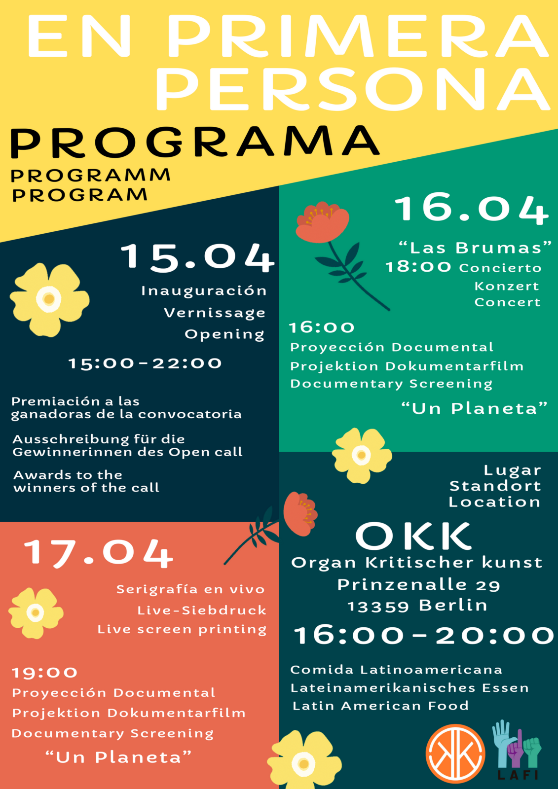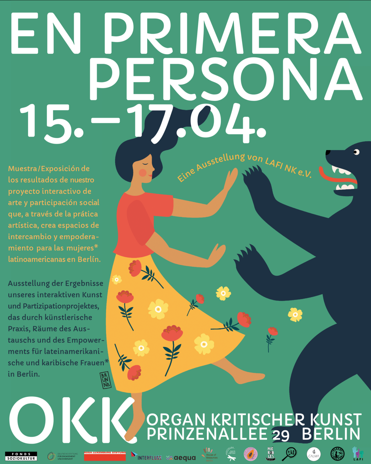 “En Primera Persona” ist ein Kunstprojekt sozialer Interaktion und partizipatorischer Forschung/Aktion, das darauf abzielt, die vielfältigen Erfahrungen und Stimmen lateinamerikanischer und karibischer Frauen* als Mitglieder der multikulturellen Gesellschaft Berlins sichtbar zu machen und einen Empowerment-Effekt zu erzeugen, indem es uns in die Rolle aktiver Akteure in der Stadt versetzt.