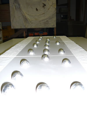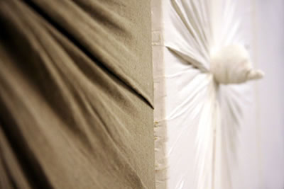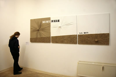 Pablo Hermann (1972) in Guayaquil/Ecuador geboren präsentiert Malerei mittleren Formats. Aufgrund der verwendeten Materialien und der gewählten Arbeitsweise nennt er sein Werk, “organischen Informalismus”. Angelehnt an die informelle Malerei der sechziger Jahre versucht er das Taktile der Stofflichkeiten sichtbar zu machen. Brailleschrift für Sehende, gepaart mit harter Kritik an der derzeitigen politischen Lage in Deutschland, beschreiben seine Werke. Knoten direkt in die Leinwand eingearbeitet, sollen sowohl den Betrachter, als auch die Künstler daran erinnern, daß Kunst einen tiefgreifenderen Sinn haben muss als eben nur das Ästhetische zu bediehnen.