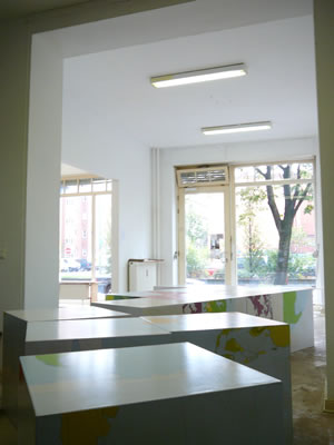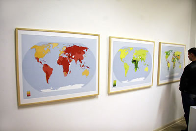 Sie präsentiert eine interaktive Rauminstallation unten dem Titel: “Signs & Locations – Building Global Cubes” mit sechs überdimensionalen Würfelobjekte, die an “Märchenpuzzle” aus Kinderzeiten erinnern. Die Seiten der Würfel ergeben nach dem zusammenlegen insgesamt sechs Bilder, sechs unterschiedliche Weltkarten, die aussenpolitische Verteilung, die Indexe von Bildung, Wohlstandindikatoren, Korruption, Schriftsystemen und Kultur. So ergibt sich ein Wechselspiel aus Bild und Abbild, Bild und Bildung innerhalb des Zeichnensystems das prä- und rekonfiguriert ist .Die Installation ist mit Digitaldrucken ergänzt.