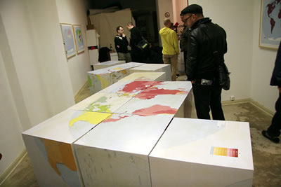 Zorka Lednarova (1976) in Bratislava/Slowakei geboren beschäftigt sich seit Jahren in ihren Arbeiten mit Kartografie und versucht die angegebenen geopolitischen Blickwinkel zu verschieben.